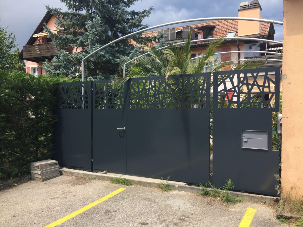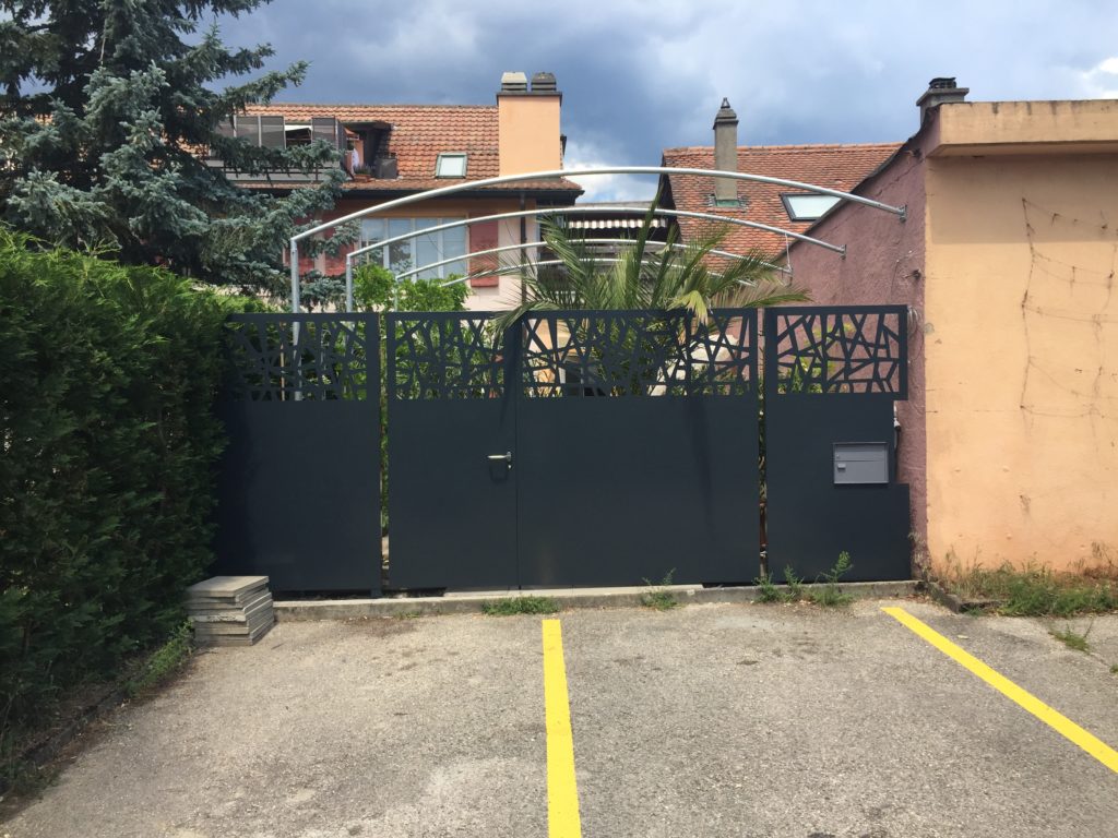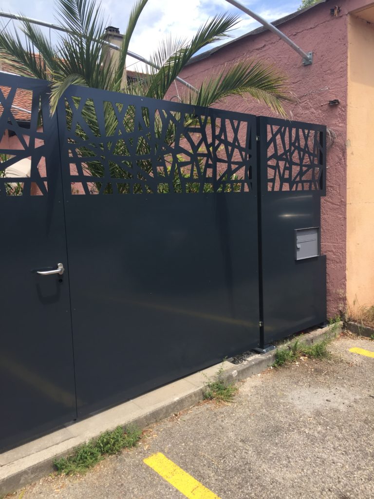 Portail en inox thermolaqué à 2 vantaux.
